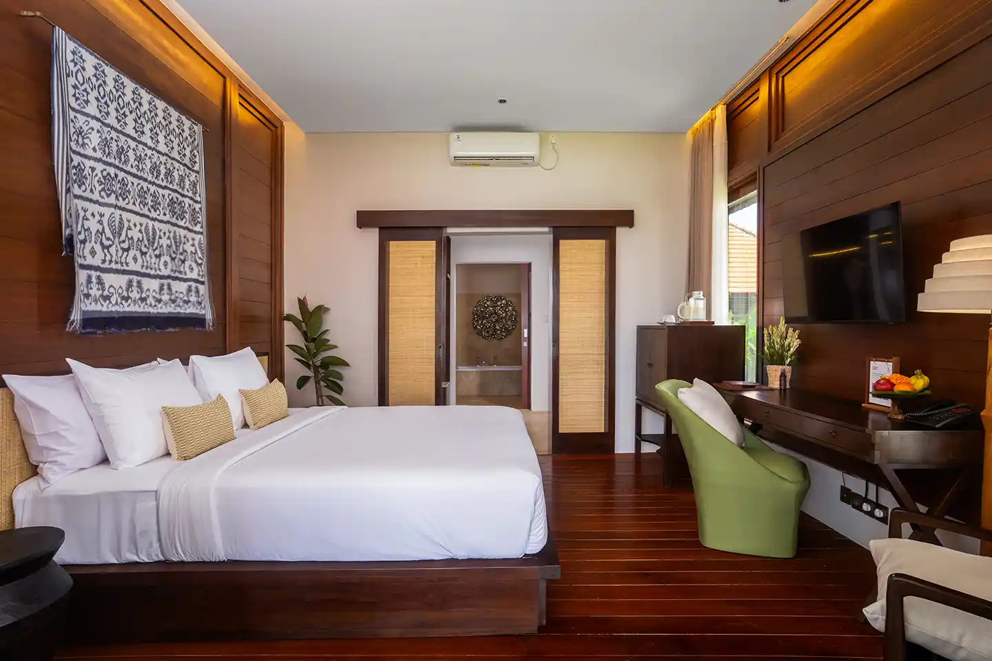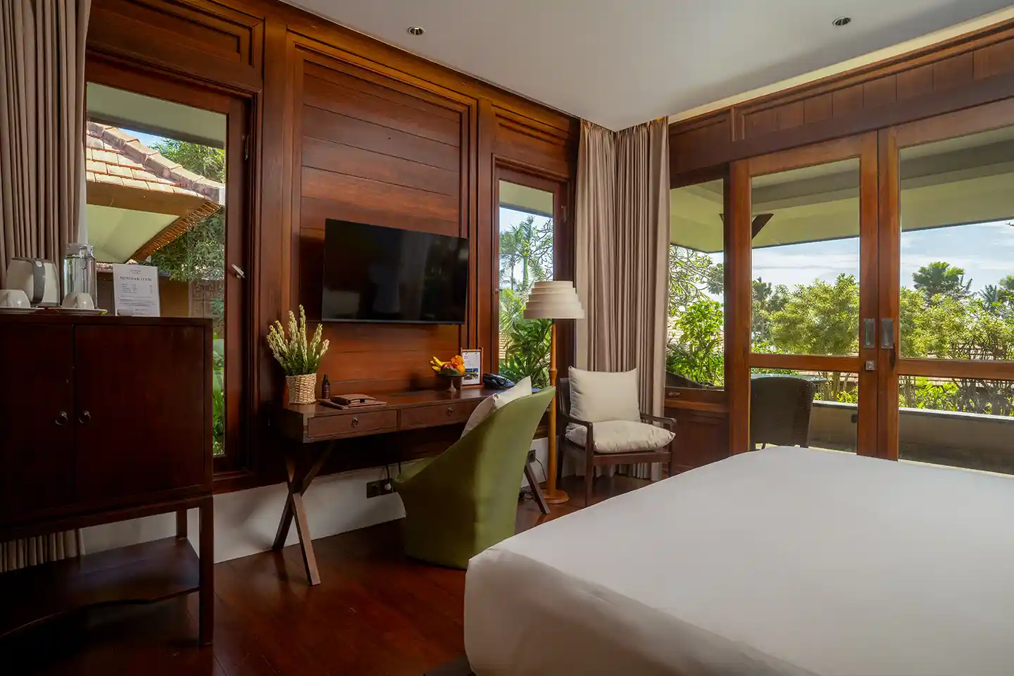 The 68 square-meter villa offers lush tropical garden view, an elegant Balinese-inspired home where you could enjoy the peaceful and serenity of the Resort from your room, with a comfortable bedroom, a private terrace and spacious bathroom with bathtub, a perfect place to unwind and relax.
